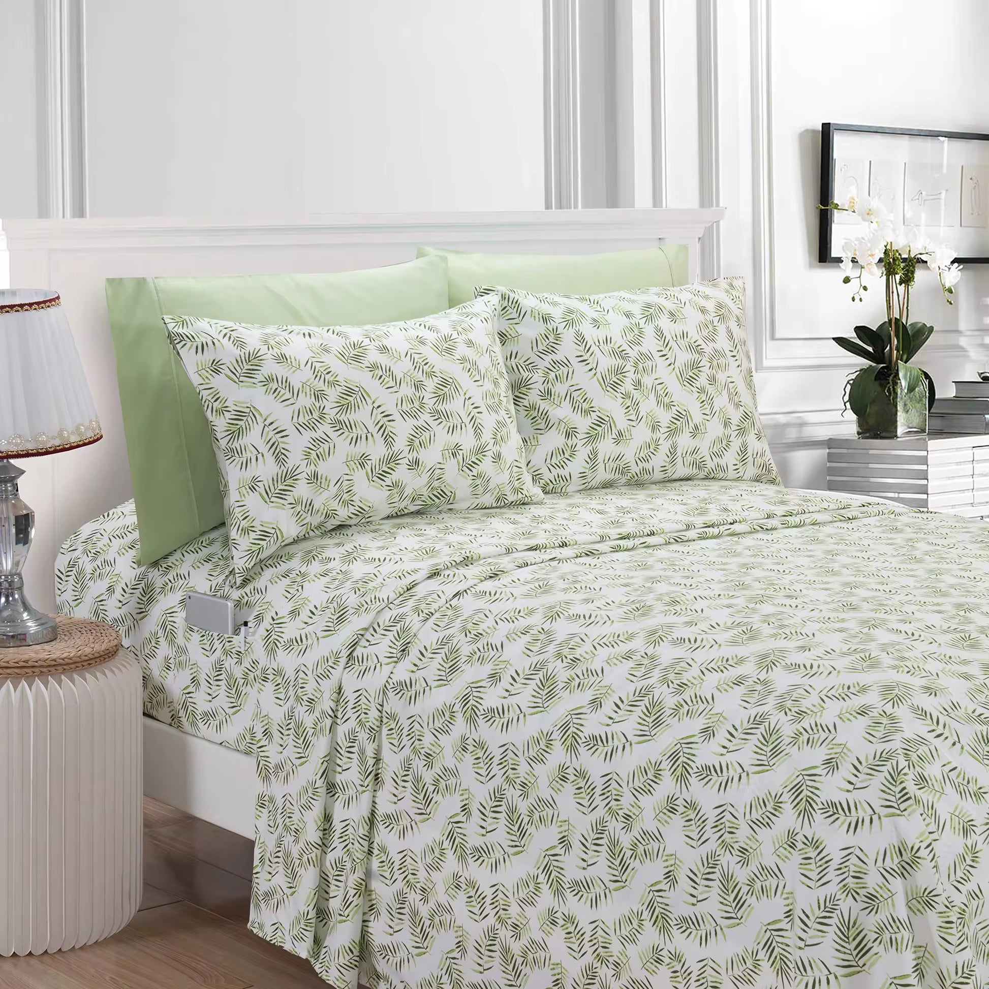Soft Double Matte 6-piece Palm Leaves Patterns Bed Sheets Set |