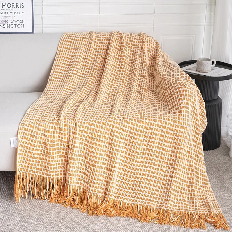 100% Acrylic Eco-Friendly Modern Luxury Waffle Blanket with Tassels for All-Season Bedding & Decorative Use