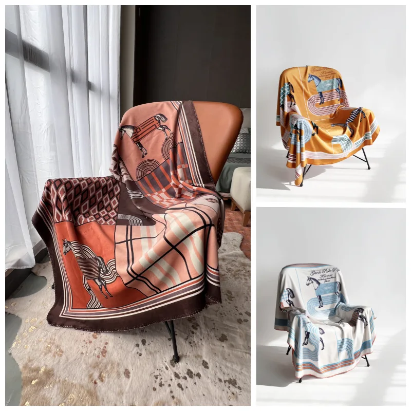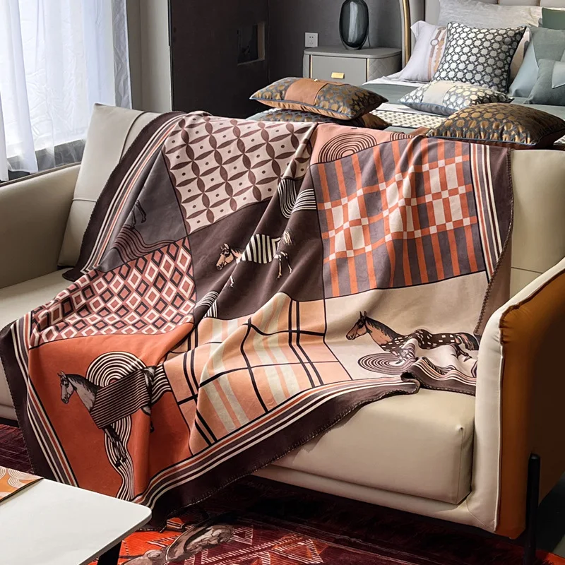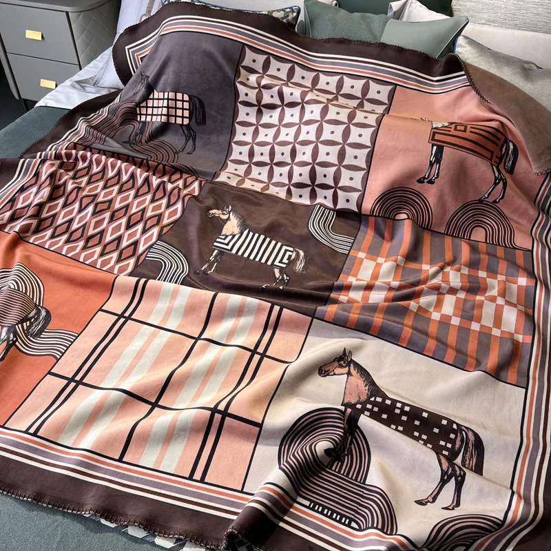 Light Luxury Fashion Printed Fleece Customized Double-layer Composite Four Seasons Use Casual Travel Blanket