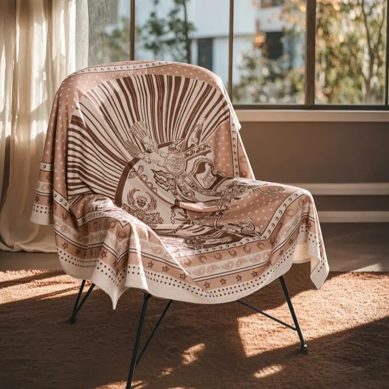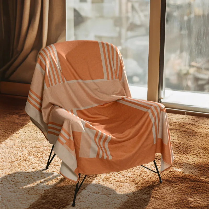 Light Luxury Fashion Wool Viscose Polyester Customizable Sofa Blanket for Hotel Airplane Travel Leisure Air Conditioning Bay