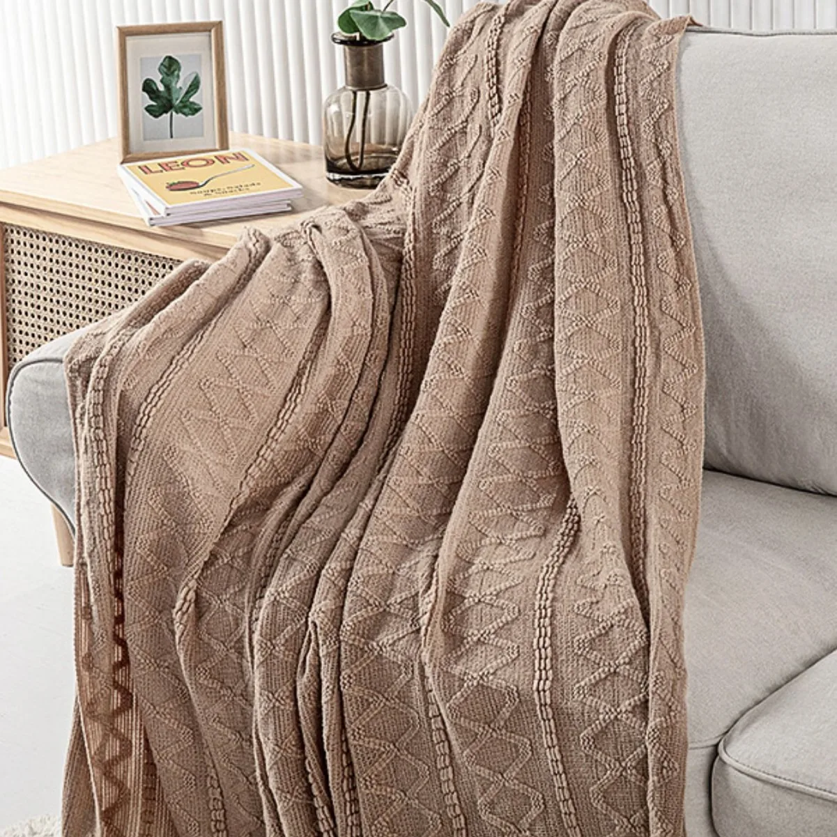 Sofa Cover Knitted Blanket Decorative Nap Light Luxury Soft Waxy Living Room Travel Throw